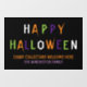 Feliz Halloween colorida tipografía espeluznante Halloween diversión Halloween decoración de ventana. Tipografía naranja, verde, púrpura, blanca y colorida, fondo negro. Texto de personalizable y nombre de familia en la parte inferior del signo. Ideal para casas, tiendas o negocios.