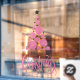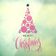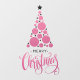 El árbol de Navidad de bolas rosas y estrellas negras y el saludo MERRY CHRISTMAS aparecen en esta ventana cling - Elija CUALQUIER TAMAÑO y **cierre frontal o posterior. (Se muestra el tamaño más grande, pero se puede hacer hasta 4" x 4")