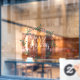 Feliz Navidad, texto escrito a mano y floral corona moderna ventana que muestra el texto "Feliz Navidad" en estilo escrito a mano.