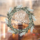 Ventana de corona de pino de invierno aferrada al guión de "Feliz Navidad" y texto personalizado. Para una personalización más avanzada de este diseño, haga clic en el enlace "personalizar más adelante".