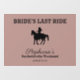 El último ciclo de bachillerato del fin de semana de la última Rosa de la novia es una forma elegante y divertida de añadir personalidad a su evento de soltera. El diseño presenta un suave fondo de rosa polvoriento y ofrece un ambiente romántico y acogedor. En la parte superior, un texto negro en negritas dice "Última travesía de novia", haciendo una declaración clara y emocionante para la celebración. Debajo del texto, una vaquera juguetona sobre un vector de caballos añade un encanto caprichoso, occidental, que complementa perfectamente el tema. El cling tiene espacio para la personalización, donde puede agregar detalles como el nombre de la novia, la fecha del evento y cualquier otra información importante. El adhesivo natural asegura una fácil remoción sin dejar ningún residuo detrás. Este revestimiento de ventanas es una forma ideal de realzar el ambiente del fin de semana de soltera, mientras se añade un toque único y llamativo.