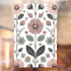 Patrón simétrico de arte folclórico con primasas estilizadas y amapolas en tonos suaves y mudos. Ideal para decoración de guardería, vajilla y acentos de casa.