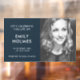 Moderno, simple ventana de vinilo funerario clavando el signo de la calcomanía para celebrar la vida de tu ser querido en un moderno diseño minimalista en azul marino. La pancarta puede ser fácilmente personalizada con su propia foto y texto para crear un tributo especial para el funeral, el memorial o la celebración de la vida de su ser querido. La imagen que se muestra es para fines de ilustracion y sólo se sustituye por la suya. La imagen de marcador de posición es de una hermosa mujer con el pelo rubio ondulado usando un pote molido y es disparada en blanco y negro monocromo. #memorial #funeral #sign