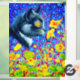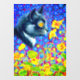 Reloj de ventanas con el gato de Louis Wain pintando animales en el mar de flores (1860-1939). Un gato blanco y negro con ojos dorados huele a flores amarillas. En el fondo morado hay flores azules. Un regalo maravilloso para los amantes de los gatos y el arte inglés.