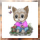 Cute Kitty Cat and Butterfly, arte a lápiz de color de Krisi ArtKSZP >>> Más productos en la categoría de la tienda >> Gato gatito > Gato gitano y mariposa