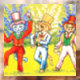 Ventana con la pintura animal de Louis Wain Tres gatos interpretando una canción y una ley de danza (1860-1939). Tres gatos antropomorfados con túxdos y sombreros de primera y bailan y cantan con sus pañuelos y bastones. Un regalo maravilloso para los amantes de los gatos y el arte inglés.