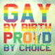 Gay por nacimiento, orgulloso por elección, diseño tipográfico de colores arcoiris. Celebridad orgullo gay con esta bandera decorativa en tu ventana.