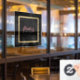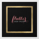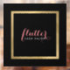 Una fuente de caligrafía rosa escribe tu nombre o el nombre de tu negocio con colas onduladas y curvas delicadas mientras está enmarcado en una caja de oro metálico falso para un glamour extra en este decal de ventana personalizado. Ideal para salones, boutiques, tiendas emergentes, marcas de cosméticos y más. © 1201AM Estudio de Diseño