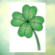 A four-leaf clover with digital glitter texture.