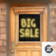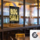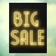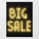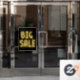 El cling de ventanas de negocios presenta el texto "Big Sale" del neón sobre fondo negro.