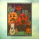 Una ventana que se aferra a un gracioso personalizado de Halloween sobre una familia de calabaza. La imagen y el fondo se pueden personalizar. Obra de arte original de DBcartoons.