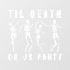 Gracioso esqueleto bailarín soltero / soltero pegatina de la ventana de la fiesta con el texto "hasta que la muerte nos haga fiesta".