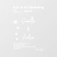 Imagine a moment where dreams blend with reality—your wedding day. Our exquisite design captures the essence of love, featuring bold white letters against a transparent background. The clean sans-serif title speaks of elegance, while the cursive names evoke romance and intimacy. Inspired by every woman's desire to find her Prince Charming, these stickers symbolize hope, happiness, and the fulfillment of lifelong dreams. They are not just decorations; they are heartfelt invitations to celebrate love’s magic. Make your wedding unforgettable and let your guests feel the enchantment! Don’t wait—order now and let your love story shine!