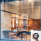 Pegatina para ventana con horario de apertura de la empresa, información y logotipo de Business Card Store.
