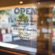 Este cling está diseñado para ayudar a las empresas a dar a conocer sus horarios de apertura a los clientes potenciales. Es una forma fácil para que los clientes descubran rápidamente a qué hora está abierta la empresa y cuándo pueden esperar encontrarla abierta.