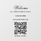 Una calcomanía de ventana de horario de apertura negra y una pegatina de ventana con logotipo de la empresa, código QR, detalles personalizados y de contacto. Una pegatina de ventana de bienvenida elegante personalizada con horario de tienda solo con cita previa, perfecta para escaparates y rótulos de puerta principal. Perfecto para el propietario de un negocio que desee informar a sus clientes sobre su horario de apertura.
