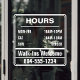 Letrero de ventana para horario de funcionamiento de la tienda. Personalízalo con el horario de atención de tu tienda. Agrega un mensaje personalizado para quienes visiten sin cita previa y el número de teléfono de tu empresa. Muéstralo en la ventana frontal o puerta de tu ubicación.