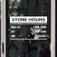 Letrero en la ventana para el horario de funcionamiento de la tienda. Personalízalo con el horario comercial personal de tu tienda.