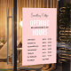 Plantilla de adhesivo para ventana de horas de apertura de negocio moderno, con estética rosa suave y diseño simple. Este adhesivo para ventana totalmente editable es una excelente manera de mostrar los horarios de apertura de su empresa en la ventana de su tienda - se puede utilizar para su tienda, salón o spa, café, restaurante o cualquier otro negocio.