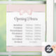 vinilo adhesivo de ventana de horas de apertura elegantes