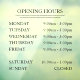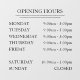 Horas de apertura elegantes y sencillas de negocio en ventana o adhesivo para vidrio para mostrar cuándo está abierto en su tienda, pequeño negocio u oficina.