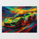 A hyper-stylized racing car built for speed and spectacle—featuring neon-glow wheels, shifting metallic paint, and aerodynamic curves that slice through dusk-lit motion.