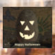 Las papas sustituyen a las calabazas como calabazas de Jack O'lanterns en Idaho. Una papa, tallada e iluminada al estilo de una calabaza de Halloween, se sienta sobre un montón de espadas, montada contra un saco de falda. También aparece un texto en personalizable que dice "Feliz Halloween". Puede cambiar el tipo de letra y el color del texto.