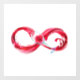 Símbolo infinito de flujo continuo de vino tinto vertiendo en vidrio de vidrio sobre fondo blanco.