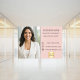 Vinilo de ventana de negocio moderno con foto, información de contacto y logotipo de la empresa. Perfecto para agentes inmobiliarios, salones, boutiques y oficinas. Fácil de personalizar con su propia marca para crear una exhibición de escaparate profesional y acogedora. Fondo rosa blush, texto color taupe.