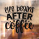 Bienvenido invitado a tu negocio con un poco de humor con esta Calcomanía de ventana La vida comienza después del café.