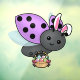 Bicho de limosna listo para Pascua con orejas de conejo y una canasta de Pascua llena de huevos decorados.