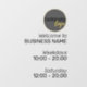 ¡Crea tu propio letrero decorativo de marca con un logotipo profesional personalizado! Este diseño de plantilla es un letrero de bienvenida a los clientes que muestra tus horas de apertura para que puedas adaptarlo a tus necesidades. Tiene un logotipo de empresa de marcador de posición que puedes reemplazar y poner el tuyo para mejorar tu espacio de trabajo y marketing visual para clientes, clientes y personal. El texto personalizado está en texto negro.