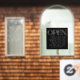 Personalice todos los colores y el texto debajo de "ABIERTO". El gráfico de "ABIERTO" se puede escalar o editar en color, o eliminar para agregar su propio texto.