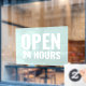 Vinilos Para Cristales Letrero de Menta Moderna “Abierto 24 Horas”