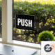 Letrero de puerta "EMPUJAR" para colocar en la(s) puerta(s) de entrada con texto blanco sobre fondo negro. O, cámbialo a tu propio mensaje.