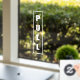 Letrero de puerta para tirar, Vinilo para ventana de Business Card Store.
