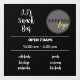 Diseño de calcomanía para pequeña empresa con marca de logotipo y horario de comercio para clientes, así como texto personalizado para resaltar productos en oferta. En esta plantilla hay un negocio de estilo camión de comida rápida, con artículos alimenticios para la venta especificados debajo del horario de apertura. Esta plantilla también incluye el nombre de la empresa y sitio web junto con el horario de funcionamiento de la empresa.