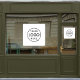 Un sencillo logotipo de negocios blanco personalizado de ventana de vinilo clavando una plantilla de señalización en un estilo minimalista moderno que se puede actualizar fácilmente con el logotipo de su empresa!