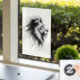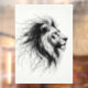An der Wand hängt ein Löwenbild – stumm, doch kraftvoll. Sein Blick durchdringt die Stille des Raums wie ein Ruf. Digital Illustration- Schwarz-Weiß