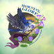 El precioso Bluejay con una bandera entre las flores de gloria matutinas crea una maravillosa ventana que atrae a los ojos y se aferra a su casa o pequeña empresa bello diseño de arte natural por Erin Cooper aka ShadowindART