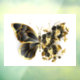 Mariposa de flores de oro con orquídea de joyería negra, decorada con hojas de oro sobre fondo blanco.