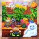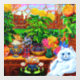 Ventana con la pintura animal de Louis Wain Master of Cat College (1860-1939). Un bonito gato blanco con ojos azules llamativos se sienta preponderantemente al lado de una vibrante variedad de hermosas flores. La majestuosa escuela de gatos se cierne sobre el fondo bajo un cielo rosa y azul. Un regalo maravilloso para los amantes de los gatos y el arte inglés.