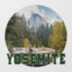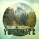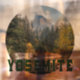 Half Dome (Cúpula media) en otoño, con el texto "Yosemite" presenta una foto de la Cúpula media de Yosemite en otoño, con un desempañamiento de nieve, y texto verde "Yosemite".