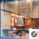 Gráfico de la ventana del menú en línea del restaurante con código QR, nombre de negocio y número de teléfono. El menú en línea del restaurante firma para todo tipo de uso promocional.