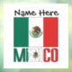 La bandera mexicana, verde, blanca y roja, se muestra muy bien en esta ventana. Debajo de la bandera está la palabra MÉXICO en los colores de la bandera. Arriba hay un espacio para personalizar con tu nombre, un nombre de familia o, personalizar con otro nombre para un regalo.