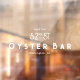 This minimalistic window cling features art deco style fonts in a dark gray color.