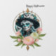 Mujer asombrosa adornada con un impresionante maquillaje de cráneo de azúcar. Los colores brillantes y los intrincados patrones cuentan historias de vida y muerte, dándole una mirada alegre y respetuosa que es perfecta para el Día de los Muertos. Su cabello largo y fluido resplandece un turquesa brillante que fluye sobre sus hombros como una cascada de color. Capta la luz y realza el ambiente festivo del diseño. El fondo brilla en tonos azules y verdes que recuerdan a un cielo nocturno, mientras que delicadas flores rosas y blancas bailan a su alrededor. Estos acentos florales no sólo agregan color, sino que también simbolizan el amor y el recuerdo de los fallecidos.