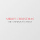 Una elegante y mínima calcomanía de ventanilla de vinilo con la frase "Feliz Navidad" en elegante tipografía roja sobre un fondo claro. Un texto de personalizable fácil añade un toque personal a este moderno y minimalista diseño de Navidades, perfecto para hacer una declaración esta temporada de vacaciones.