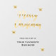 Feliz Navidad en una escritura moderna y elegante en dorado metálico. Decorado con estrellas doradas metálicas.