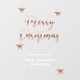 Feliz Navidad en una escritura moderna y elegante en rosa metálico dorado. Decorado con estrellas doradas metálicas. Agrega el nombre de tu negocio en blanco con estilo.
